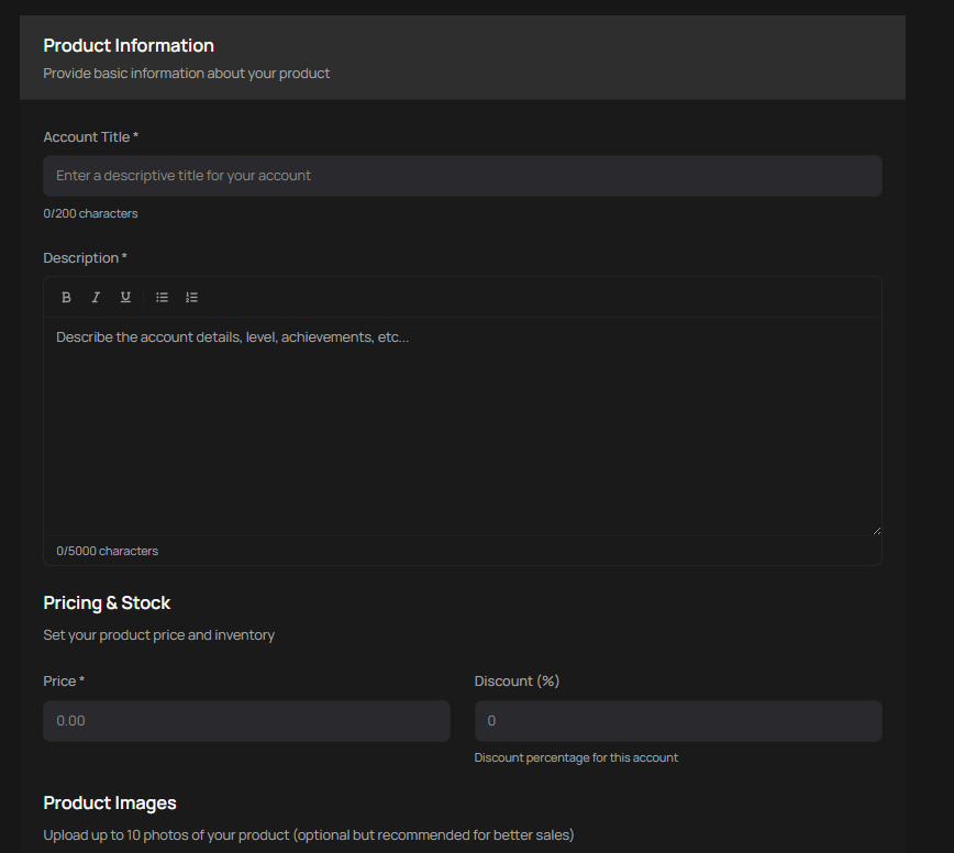 These guidelines apply to all listings in the Accounts category. Accounts must be legitimate, accurately described, and fully transferable with clear access information. Failure to follow these may result in listing removal, suspension, or loss of selling privileges.